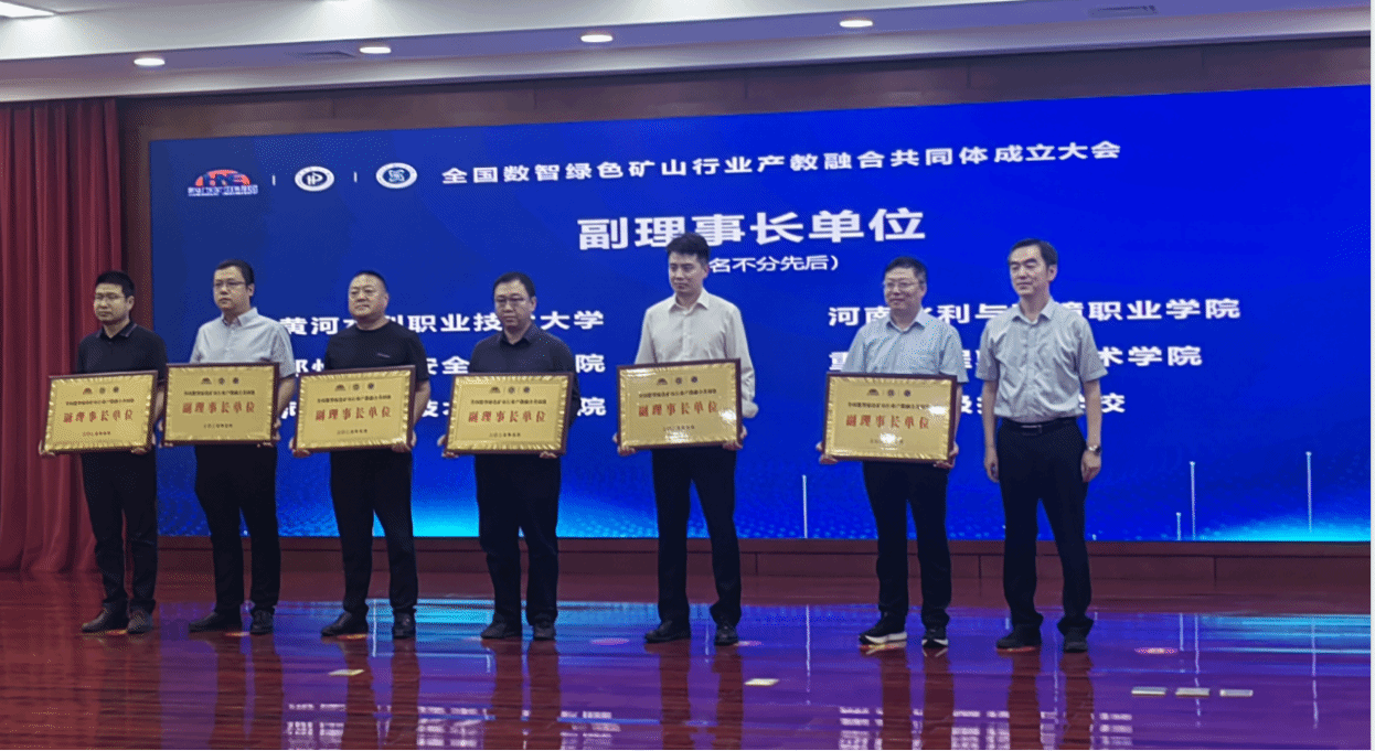 大会现场举行了全国数智绿色矿山行业产教融合共同体成立仪式与授牌仪式。该共同体旨在整合各方资源优势,联合开发优质教学资源,培育契合行业需求的高素质专业人才,并积极推进高水平创新成果的研发与转化应用,构建实体化运行机制,深化产学研用协同合作,为推动我国矿山行业现代化进程、实现产业转型升级提供强劲动力,全力助推矿山行业向数字化、智能化、绿色化方向发展。我校作为共同体副理事长单位,将与各成员高校、行业企业开展紧密合作,深化校企对接机制,在人才培养、技术创新、产业优化升级等方面持续深耕,协同培育大批高技能专业人才,实现校企高效对接,深化产教融合,助力行业企业高质量发展。