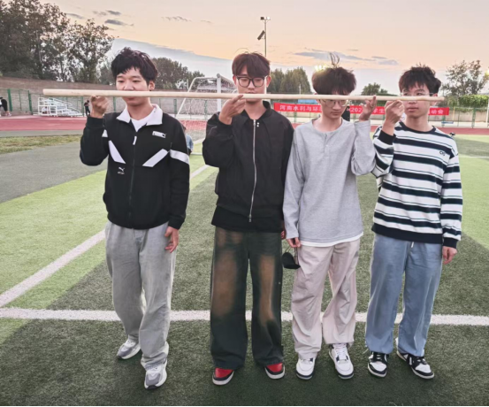 活动内容丰富多样,包含团队建设、齐眉棍、盲人方阵和解手链4个环节,每个环节都充满了挑战与乐趣。在团队建设环节,同学们被分成7至10人的小组,他们需要在规定时间内为团队起一个响亮的名字、设计一句口号以及一个独特的标志。这一环节充分激发了学生的创造力和团队协作能力,每个团队都展现出了独特的风采。