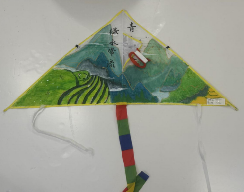 其中,最引人注目的作品是一幅以“绿水青山就是金山银山”为主题的风筝。这幅风筝以蓝色和绿色为主色调,绘制了一幅美丽的山水画卷,表达了学生们对环境保护的关注和呼吁。