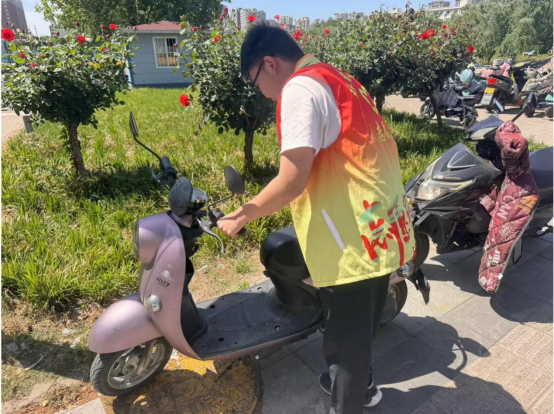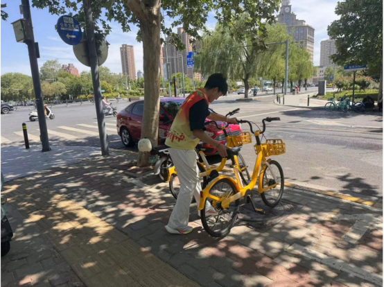 活动中,23名志愿者在学校附近道路上仔细检查每一段盲道,认真清理盲道上的垃圾和杂物,有序摆放共享单车,确保盲道畅通无阻,为盲人的安全出行保驾护航。