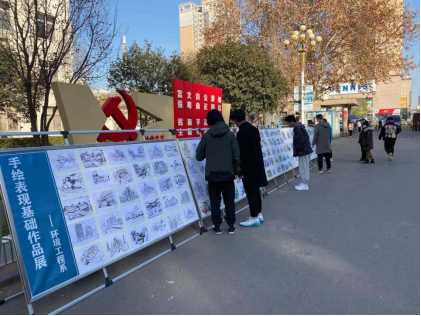 2020年12月24日环境工程系在行政楼前展出了2020级环境艺术设计专业的部分手绘作品。
