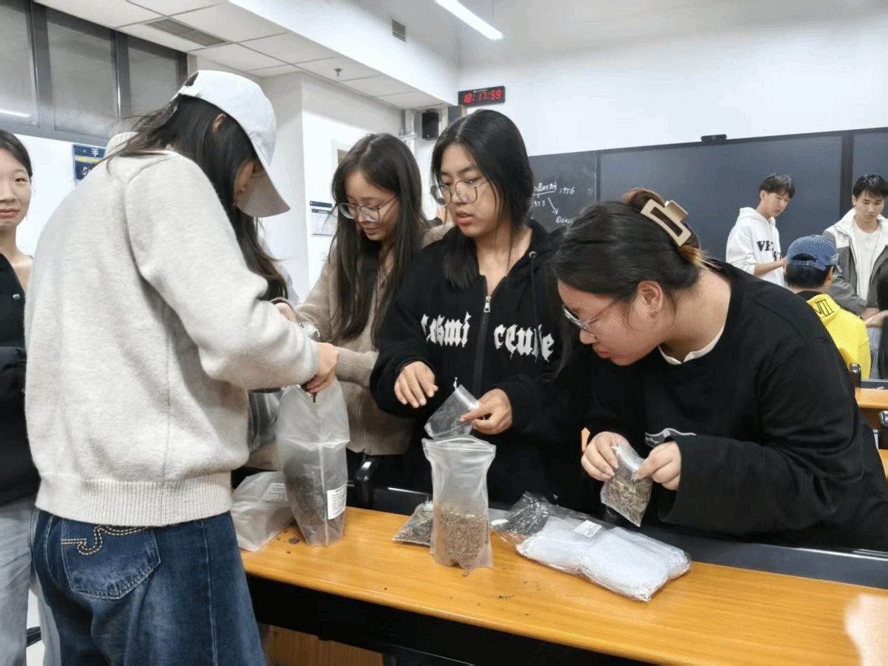 立冬标志着万物进入休养收藏的时节,亦为反思过去、展望未来提供契机。同学们在自备信纸上,亲手书写下来年的愿望、对未来的憧憬或对师友的祝福,亦可绘制简画、附上纪念小物,将真挚情感封存于特制信封中,交由学院统一保存。这些“时间胶囊”将于次年立春重启,让参与者见证时光中的自我成长,活动现场氛围温馨融洽。提交信笺后,同学们可亲手制作印有学院标识的精美香囊,作为本次活动的留念。香囊不仅增强了互动体验,也成为凝结学子与学院情感的独特载体,深受大家欢迎。