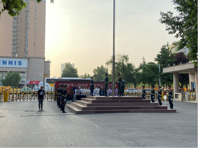 伴随着激昂的《义勇军进行曲》,鲜艳的五星红旗冉冉升起,全体同学行注目礼,齐唱国歌。系党总支副书记邢伟明进行国旗下讲话,要求广大青年学生深刻领悟五四运动“爱国、进步、民主、科学”的精神内涵,在政治上忠于党、忠于人民,思想上甘于奉献、砥砺奋进,行动上只争朝夕、不负韶华,在学习和生活中继承和弘扬五四精神。20级学生杜亚平同学代表发言,呼吁同学们积极响应“学党史、强信念、跟党走”的伟大号召,学好党的百年辉煌史,传承党的优良红色基因。