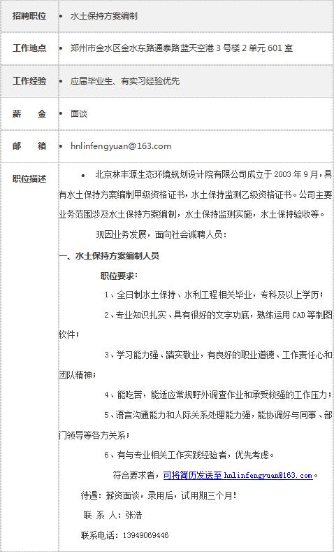 北京林丰源生态环境规划设计院河南分公司招聘信息